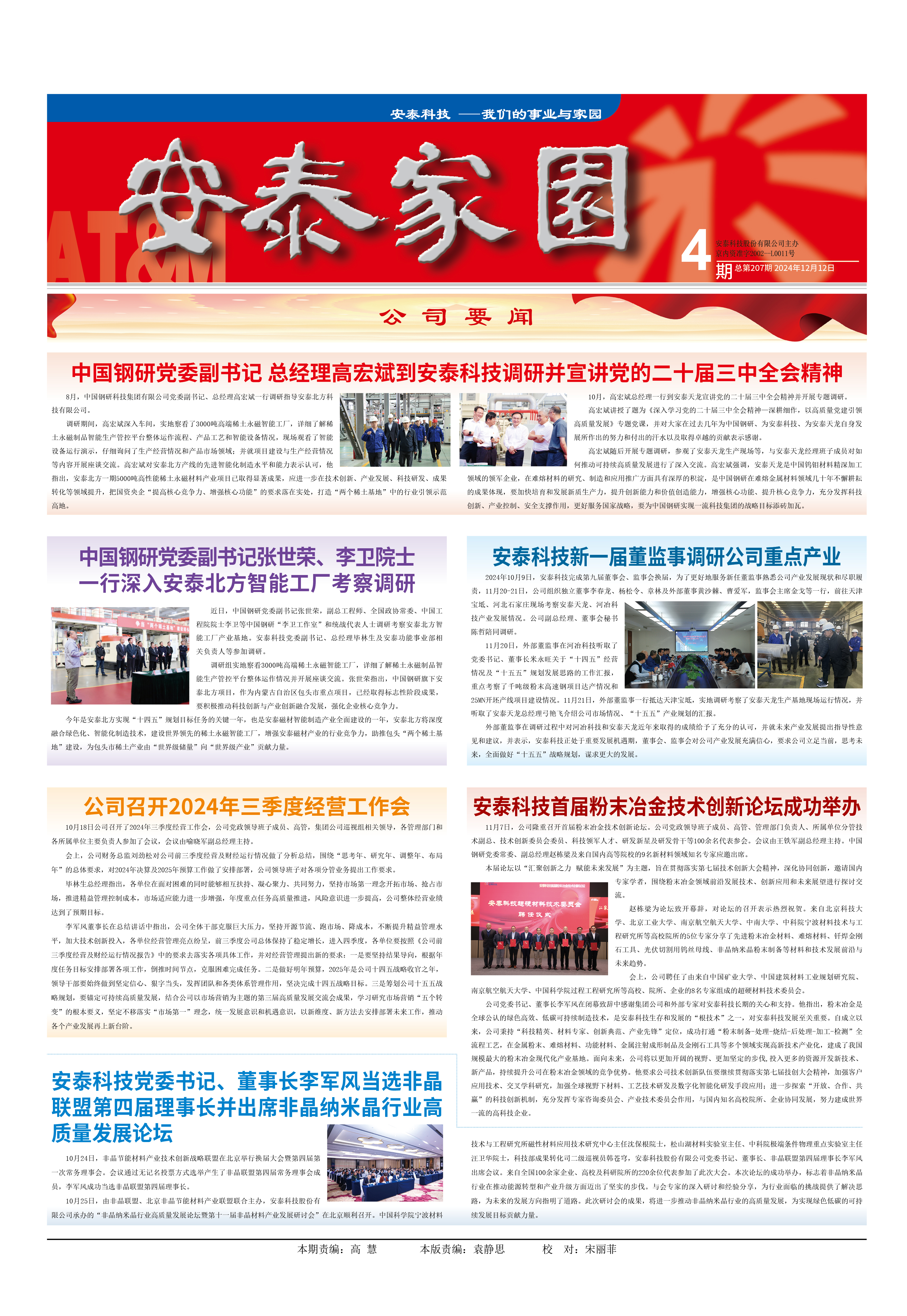中國鋼研黨委副書記、總經理高宏斌到安泰科技調研并宣講黨的二十屆三中全會精神